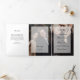 Esses modernos programas de casamento triplos e minimalistas mostram suas próprias fotos cobrindo completamente os cobrir dianteiros e traseiros. Uma camada branca contém todos os textos da sua cerimônia, bem como as suas iniciais.
