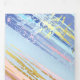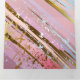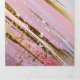 Fundo de textura rosa e azul, pintado com grandes pinceladas, decorado com folha de ouro. Textura Grunge.