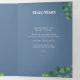 O triplo programa de funeral no qual você pode adicionar duas fotos de seu ente querido junto com um obituário, ordem de serviço, seu salmo favorito, poema ou oração, e reconhecimentos. O programa de fúria funerária é impresso em uma sombra profunda de azul mudo com elegantes fontes brancas e mariposa subindo pelas páginas.