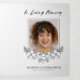 Programa fúnebre floral triplicado que você pode personalizar com duas fotos de seu ente querido, uma no cobrir e uma dentro maior com ilustrações de flores brancas com a arte da linha de carvão. Adicione obituário e ordem de serviço também com reconhecimentos.