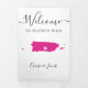 Bem-vindos convidados ao seu casamento com esta carta tripla. Há muito espaço para incluir seu itinerário, sugestões de restaurantes, coisas para fazer e informações de contato. Há espaço para uma foto na parte de trás da carta. Todo o texto pode ser personalizado, incluindo o título. Você pode editar as cores de qualquer parte desta design, assim como mover o coração para o local do seu casamento. Para alterar as cores, clique em personalizar e, em seguida, "editar usando a ferramenta design." Selecione o elemento que deseja editar e, em seguida, use as ferramentas para fazer as alterações.