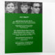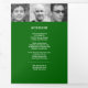 Simples programa de funeral gráfico moderno em verde escuro, preto e branco. Substitua o texto de exemplo e doze fotos marcadoras por suas próprias fotos especiais e ordem memorial de serviço, obituário, leitura ou poema, e reconhecimentos, e detalhes de informações pessoais. Outros itens de memória de manutenção de funeral correspondentes estão disponíveis. Texto gráfico 'A passagem de uma legenda' e design por www.mylittleeden.com