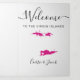 Bem-vindos convidados ao seu casamento com esta carta tripla. Há muito espaço para incluir seu itinerário, sugestões de restaurantes, coisas para fazer e informações de contato. Há espaço para uma foto na parte de trás da carta. Todo o texto pode ser personalizado, incluindo o título. Você pode editar as cores de qualquer parte desta design, assim como mover o coração para o local do seu casamento. Para alterar as cores, clique em personalizar e, em seguida, "editar usando a ferramenta design." Selecione o elemento que deseja editar e, em seguida, use as ferramentas para fazer as alterações.