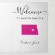 Bem-vindos convidados ao seu casamento com esta carta tripla. Há muito espaço para incluir seu itinerário, sugestões de restaurantes, coisas para fazer e informações de contato. Há espaço para uma foto na parte de trás da carta. Todo o texto pode ser personalizado, incluindo o título. Você pode editar as cores de qualquer parte desta design, assim como mover o coração para o local do seu casamento. Para alterar as cores, clique em personalizar e, em seguida, "editar usando a ferramenta design." Selecione o elemento que deseja editar e, em seguida, use as ferramentas para fazer as alterações.