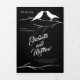 Dois corvos elegantes tocados num galho são a forma perfeita de celebrar o seu casamento gótico. As silhuetas de aves brancas estão contra um fundo preto contrastante. Também excelente para um casamento de Halloween.
