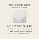 Espessura de 18 pt / Gramatura de 120 lb. Branco suave, textura delicada.