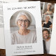 Este programa de funeral tripartido é projetado para famílias que precisam de um layout claro e completo que seja fácil de personalizar. Ele combina uma seção de ordem de serviço com uma colagem de fotos, permitindo que você inclua uma mistura significativa de retratos e memórias familiares sem superlotar a página. O layout guia você através de conteúdo-chave como detalhes do serviço, reconhecimentos, texto de tributo e uma seção dedicada de palavras de conforto para um poema ou oração, para que nada importante seja perdido durante um momento estressante. O texto é organizado para facilitar a leitura, ajudando os convidados a acompanhar durante o serviço, seja um funeral tradicional, memorial ou celebração da vida. Todo o texto e fotos podem ser editados diretamente no Zazzle, sem necessidade de habilidades de design. Uma escolha prática para criar um souvenir pessoal e rico em fotos que também funciona suavemente durante o serviço.