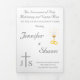 The Traditional Latin Nuptial Mass is a deeply reverent and beautiful celebration of the Sacrament of Matrimony, rich in tradition and deep in spirituality. Designed specifically for a Traditional Latin Mass wedding, the "Timeless Catholic" trifold wedding program contains the necessary parts of the Latin Nuptial Rite. Front cover bears the image of the Eucharist and chalice next to the image of gold wedding rings against a white background. Heading is featured in an elegant Nuptial font, while sub-heading displayed in a clear print. Names of Bride and Groom are also displayed in a Nuptial font. Bottom left corner displays the initials of the bride and groom on either side of the image of a white cross. Name and address of the church appear at bottom in a smaller print. All text is featured in an elegant silver color.