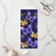 Composição de borboletas luxuosas de safira e joias de ouro em fundo azul texturizado.