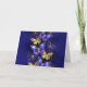 Composição de borboletas luxuosas de safira e joias de ouro em fundo azul texturizado.