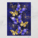 Composição de borboletas luxuosas de safira e joias de ouro em fundo azul texturizado.