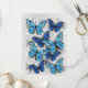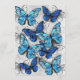Composição vertical de borboletas de morfo realistas, azuis e brancas sobre fundo texturizado de cinzas. Borboleta azul Morpho.