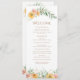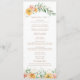 Elegante Moderno Laranja Amarelo Laranja Amarelo Floral Programas de Casamento Floral A papelaria apresenta elegantes flores laranja e amarelas com acentos verdes e dourados brilhando sobre fundo branco. Perfeito para sua cerimônia de casamento, acrescentando elegância com tipografia de escrita de caligrafia dourada. Parte de uma coleção projetada para você pelo Evco Studio www.zazzle.com/store/evcostudio