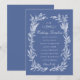 Eleve a experiência dos seus convidados com este cartão de cronograma de casamento com coroa de flores silvestres em azul-marinho sofisticado, apresentando uma moldura botânica desenhada à mão em branco nítido de flores silvestres e folhagens, combinada com um laço clássico e monograma personalizado contra um rico fundo azul de centáurea. Este cartão de itinerário de casamento é a maneira perfeita de manter seus convidados informados sobre o cronograma do seu dia especial, ao mesmo tempo em que complementa perfeitamente seus convites de casamento de flores silvestres em azul-marinho, cartões de menu e cartões de detalhes para um conjunto de papelaria coeso e elegante.