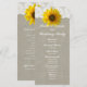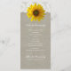Este adorável programa de casamento do estilo rustico da vintage tem um modelo fácil que permite preencher a festa de casamento de um lado, e a ordem da cerimônia do outro. Lace branco estilo Vintage em linho, com um girassol amarelo alegre. Clique no botão personalizar se precisar alterar alguma coisa. OBSERVE QUE TODOS OS ELEMENTOS SÃO EFEITOS IMPRESSOS — não há linha real.