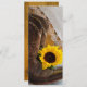 Dê aos seus hóspedes a ordem da sua cerimônia de casamento do estilo fazendeiro ou fazenda rural com o encantador Programa de Casamento de Sunflower e Locais Ocidentais. Este programa personalizado de casamento informal, mas elegante, apresenta uma fotografia floral acinzentada de botas de cowboy castanhas, flor de girassol amarela, lenço vintage aparado lenço de linho e véu branco com madeira castanho rústica.