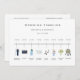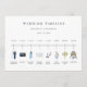 Ícone de aquarela ilustrado programa da linha cronológica do casamento e os detalhes da cerimônia no verso. Esta placa apresenta noiva & noivo, anéis, câmera, coquetel de vidro, configuração de placas, notas de música, bolo, buquê e carro retrô. Para personalização mais avançada deste design, clique no link "Personalizar mais".