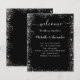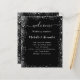 Um fundo preto moderno, decorado com faíscas de prata. Personalize e adicione seus nomes e sua linha do dia do casamento. Texto branco. Se você tiver mais texto, é possível reduzir o espaço na linha. Você também pode adicionar texto no verso. 1 folha = 1 programa impresso borda a borda.