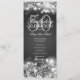 Design de "Programa de Festa de aniversário" elegante com faíscas e luzes em prata com texto personalizado.