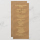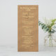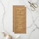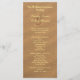 Alto, programa de casamento de areia da praia. Personalize em ambos os lados do papel longo com texto amarelo claro sobre a imagem de areia marrom. Inclua o local do casamento, os nomes da festa de casamento e uma nota de "obrigado" para os convidados.