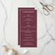 Um cartão de programa chic e moderno com um fundo velvety plum. O título aparece em um roteiro vivo e os detalhes aparecem em uma fonte serif restrita e sofisticada.