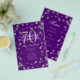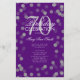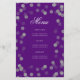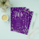 Design "Programa de Festa de Aniversário" elegante com Confetes Reluzentes em Prata e Roxo com texto personalizado.