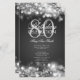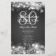 Design de "Programa de Festa de aniversário" elegante com faíscas e luzes em prata com texto personalizado.