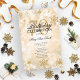 Design elegante do "Programa de Festa de aniversário" com flocos de neve brilhante de inverno e luzes Douradas com texto personalizado.