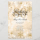 Design elegante do "Programa de Festa de aniversário" com flocos de neve brilhante de inverno e luzes Douradas com texto personalizado.