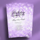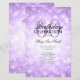 Design de "Programa de Festa de aniversário" elegante com flocos de neve de inverno e luzes em roxo com texto personalizado.