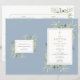Com delicadas folhas de verde em aquarela num fundo azul poenta e um crucifixo dourado elegante, este programa de batismo ou cerimônia de baptismo pode ser personalizado com as suas informações especiais. Concebido por Thisisnotme©