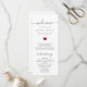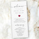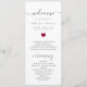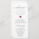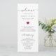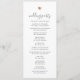 Este programa chic de casamento brilha com simplicidade. A tipografia moderna e a caligrafia deslumbrante acentuadas por um bonito coração vermelho, essa ordem de serviço com um resumo das pessoas-chave nas costas é minimalista e elegante.