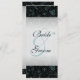Um design simples e elegante com fundo preto com padrão floral azul-turquesa e uma faixa central branca com uma continuação fraca do padrão floral. Todos os itens deste conjunto estão completos com modelos de escrevendo de exemplo, prontos para você preencher detalhes ou personalizá-los completamente apenas para você!