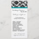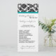 Este Cartão do Programa de Casamento de Teal Turquoise de Damasco Negro 4x9 é perfeito para qualquer casal dar à entrada de sua cerimônia para que seus convidados saibam quais músicas serão tocadas e a ordem dos eventos de cerimônia. Estes vêm com envelopes brancos padrão, mas você pode simplesmente descartá-los ou mantê-los e usá-los com os programas e vestir o exterior do envelope com flores, brilho, fita, etc. Palavra e layout creditados a Jennifer com Designs Coloridos