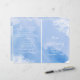 Moderna cerimônia de núpcias de abstrato com cor d'água, de recife de coral de aquamarina azul, e programa de dobradura de festas com uma pintura manual de cor d'água com textura em tons de azul-aquamarina, recife de coral em branco e texto em branco e cinza. Este elegante e na moda exótico design de casamento casual é um modelo perfeito para o seu casamento de verão no destino da praia costeira. Você terá que dobrá-lo no centro. Escolha apenas este tipo de valor de papel à medida que ele se dobra bem. Note que esta é apenas uma imagem de aquarela com textura não real.