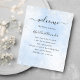 Um fundo azul bebê decorado com falso brilho prateado, brilhos. Personalize e adicione seus nomes e detalhes do casamento. Letras pretas coloridas. Se você tiver mais texto, é possível reduzir o espaço na linha. Você também pode adicionar texto no verso. 1 folha = 1 programa impresso borda a borda.