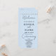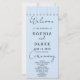 Apresentando nosso programa de casamento azul-claro etéreo, adornado com uma fileira celeste de estrelas de prata suspensa delicadamente alinhadas no topo. Essa design encantadora é trabalhada meticulosamente para casais que buscam temas celestes, estrelados ou místicos, captando perfeitamente a essência de uma noite estelar mesmerante e maravilha celestial, ideais para casamentos noturnos. Na frente do programa, os nomes dos casais, a significativa data do casamento, os detalhes do local e as informações abrangentes da cerimônia são mostrados elegantemente contra um pano de fundo azul-claro-sereno. Abrangendo a simplicidade e a elegância, a maioria do texto é apresentado em um bloco de caracteres limpo e facilmente legível. Adicionando um toque de encanto, as palavras "Bem-vindo", "Cerimônia" e "Festa de casamento" são lindamente escritas em uma fonte decorativa. Essa bela fonte de script proporciona um ar de graça e sofisticação, elevando a atração visual do programa. Ao virar para trás, debaixo da fileira das estrelas de tiro prateado cativantes, é cuidadosamente fornecida uma lista completa dos detalhes da festa de casamento. O filme de inspiração celeste melhora o ambiente místico do programa, fazer-o uma escolha perfeita para casais que anseiam por infundir seu casamento com fascínio celeste e encanto místico. Adaptado àqueles cativos pela beleza celestial, nosso Programa de Casamento Azul Claro, com uma fileira mesmerante de estrelas suspensas de ouro rosa, traz um encanto etéreo para sua celebração. Sua apresentação celeste e elegante a tornam a escolha ideal para casais que desejam evocar uma atmosfera encantadora e acesa em seu dia especial.