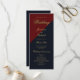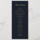 Um moderno programa de casamento azul-marinho com texto dourado.