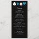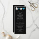O texto elegante é facilmente personalizado neste formato preto, chic, magro, do casamento de Vegas. Preto e branco se sentem sofisticados quando acentuados com o brilho azul turquesa e os naipes de cartão branco.