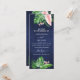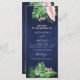 Folhas de Palma Verde Tropicais e Flores Rosa Esmagadas Aquarela com Forma Geométrica de Folha Rosa Gold Faux e Cartões do Programa Primavera de Casamento Azul Marinho ou de Verão - inclui uma bela e elegante tipografia da escrita com flores botânicas tropicais modernas e verde para a celebração especial do Dia do Casamento.