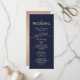 Programa de casamento elegante, moderno, minimalista, simples de ouro rosa e marinho azul com aves únicas desenhadas à mão, flores e roteiros de caligrafia.