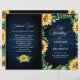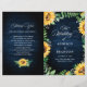 O programa de casamento elegante e moderno do país rústico apresenta flores brilhantes amarelas de girassol e o bafo de bebê/girassofila floral com folhas sobre fundo de madeira azul-marinho. Por favor, encontre mais designs e variações na minha loja de "blisswedingpaperie". E fique à vontade para me contactar para mais personalizações ou itens correspondentes.