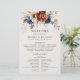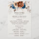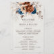 Elegante azul-Marinho, Terracotta, programa de casamento do tema floral da Terra Laranja com buquê elegante de azul-Marinho, rosas de cor Terracotta e folhas de eucalipto. Entre em contato comigo para obter ajuda sobre a personalização ou se você precisar de outro produto com este design.