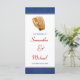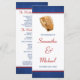 Um programa de casamento temático de baseball clássico. Apresentando um design de luva de beisebol em tons clássicos de azul, vermelho e branco. Perfeito para um casamento temático de baseball ou esporte. Personalize facilmente o seu evento!