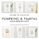Programa de Casamento Boho Pumpkins Pampas. Um programa de 5,5 x 8,5 pol com preço orçamentário em uma ampla variedade de opções de papel. Lindos florais em cores de outono decoram o topo de cada lado com um roteiro definido para Bem-vindo. O resto do texto de ambos os lados pode ser facilmente personalizado.