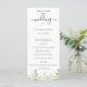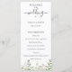 Programa de casamento de flores silvestres em aquarela, programa de casamento. O programa apresenta um "casamento" com várias linhas para texto personalizado, incluindo cerimônia, ordem dos eventos, cortejo e nota de agradecimento. Projetado para combinar com nossa coleção de flores silvestres elegantes.