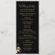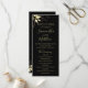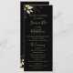 Este programa elegante de casamento apresenta folhas de ouro e tipografia de ouro. A frente apresenta os nomes do casal, a data do casamento e a localização, bem como os detalhes da cerimônia. A parte traseira apresenta os nomes da festa de casamento. Todos os detalhes, incluindo a cor do texto, são completamente personalizáveis. Note-se que as folhas de ouro e o texto não são folhas de ouro e não são brilhantes no programa impresso.