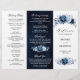 Elegante programa de casamento do tema azul/Marinho Dusty com buquê elegante de azul Dusty, Marinho, botões de flores rosa e folhas de eucalipto azuis. Entre em contato comigo para obter ajuda sobre a personalização ou se você precisar de outro produto com este design.