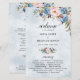 Cartão de programa de casamento floral azul poeirento botânico com elegantes buquês de azul-marinho / azul poeirento, branco, rosa bege, rosa pêssego e folhas de eucalipto verde-sage. Por favor, entre em contato comigo para qualquer ajuda na personalização ou se você precisar de qualquer outro produto com este design.