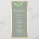 Programa de casamento moderno e elegante em verde salvia suave com folhagens botânicas em aquarela e caligrafia refinada. Este layout frente e verso inclui os detalhes da sua cerimônia e lista de membros da festa, emoldurado com bordas douradas chiques.